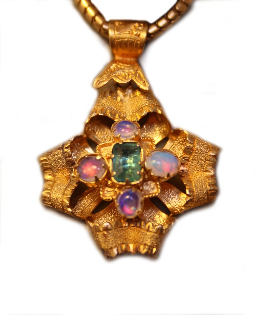 Antique jewellery is most commonly made out of 18ct, 15ct, and 9ct but you will also see 14ct, 12ct and 10ct.