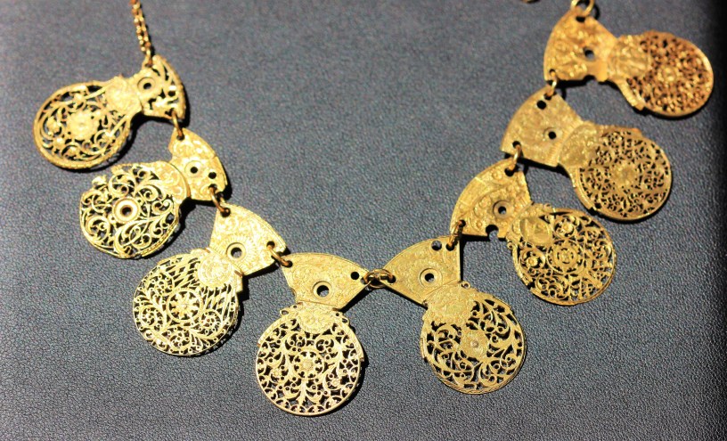 Two other terms which you may see to describe gold metals are vermeil (also known as silver gilt) and gilt. Vermeil is when gold is laid over silver and gilt is wood or metal painted with gold paint or gold leaf. In the US, vermeil pieces must have the same gold content as gold fill to be labelled as vermeil and must be marked accordingly. Also, in Australia, auction houses often use the term ‘gold lined’, which seems to be a catch all to cover unmarked rolled, filled or plated gold jewellery.