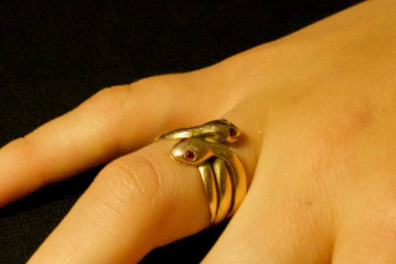It is hard to believe that there can be so many different ways to design a snake ring. Basically, the ring is just a snake wrapped around into a finger ring. But there are lots of differences. So let’s look at some rings. Because snakes have been used in jewellery in the 18th 19h, 20th and 21st centuries, determining the age of a ring can be hard. If the ring is hallmarked, the assessing its age is easy but most antique rings are not hallmarked.