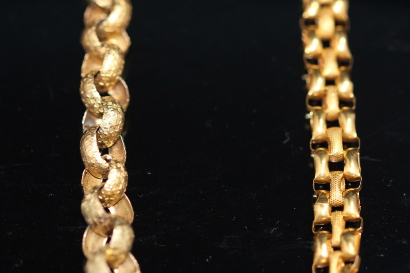 We often take chains used in jewellery for granted and don’t look to closely at them but they can tell us a lot about the era when they were made. Chains have been crafted for centuries, starting as simple ring chains and then developing into more ornate chains once soldering was invented over 5000 years ago.
