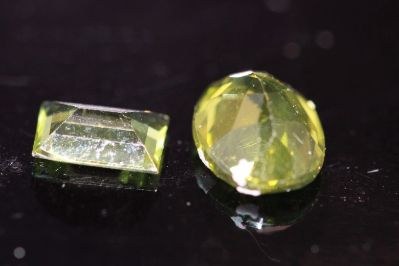August has three gemstones – peridot, spinel and sardonyx. I am going to talk about peridot, that lovely green gemstone. Peridot only comes in the colour green, although the green can range from a pale green through to a brownish green. It has a hardness of 6.5 to 7 on Mohs’ scale so is suitable for most jewellery but can be brittle and so care is needed for rings and bracelets. Peridot does not appear to be the subject of much enhancement or treatments, unlike many other gemstones.