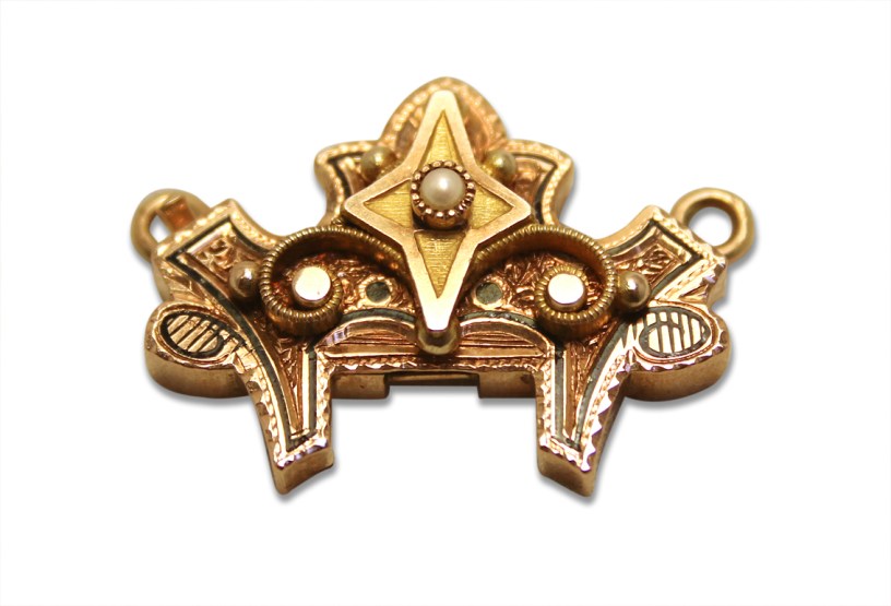 This final photo is of a commonly found slide with a central cameo. Slides are very versatile jewellery pieces. Some are enamelled, set with diamonds or pearls, engraved or inscribed. The size can differ a lot and they can be made of gold or be gold filled. You can find them sold separately and it is worthwhile looking out for them.