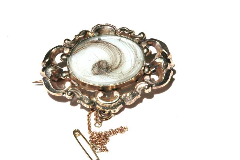 As the manufacturing sector grew in 19th century England and America, mourning jewellery became more affordable. Jewellery could be machine-made in volume. A mourning brooch could be stamped out by machine in the hundreds and all that had to be added by the customer was some hair. Many brooches and lace pins were sold as kits, like the brooch at the top of the page.