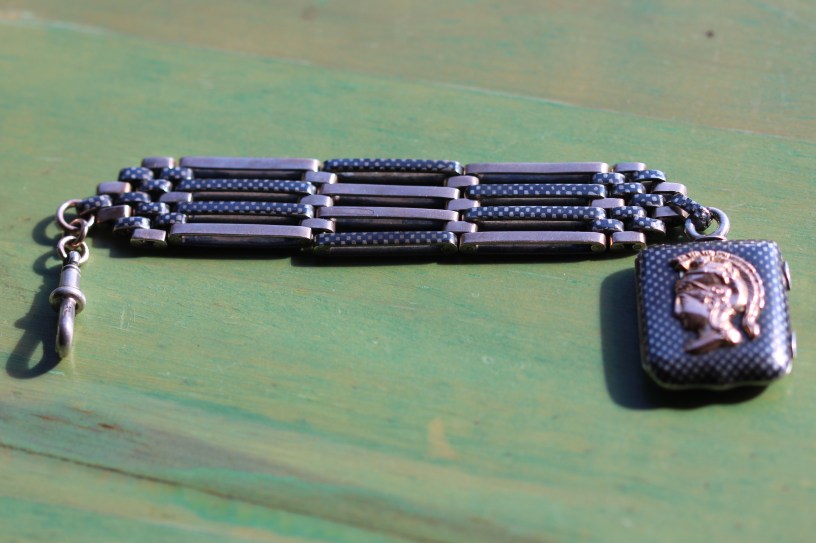 Niello is a form of decorative inlay that has been used since at least the Roman times. The name comes from the Latin nigellum meaning somewhat black. For antique jewellery, the process involved engraving a design onto a piece of metal, usually silver, then filling the hollowed out areas with a powdered black alloy and heating it so that the black powder melts and fuses into the engraved patterns. According to Pliny, the powdered alloy comprised 3 parts silver, 2 parts sulphur and 1 part copper. Over the centuries the recipe changed and lead was added to the alloy around the 11th century. Sometimes the silver was gilded.