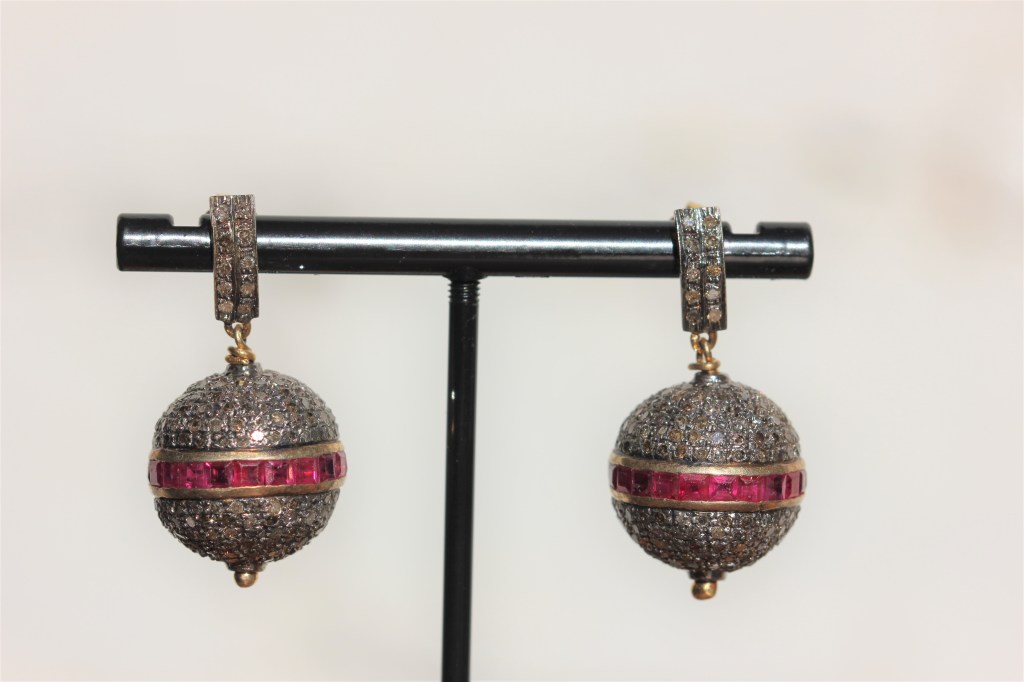 The vintage diamond and ruby ball earrings above illustrate well how rubies and diamonds go together. The rubies in these earrings have been treated.