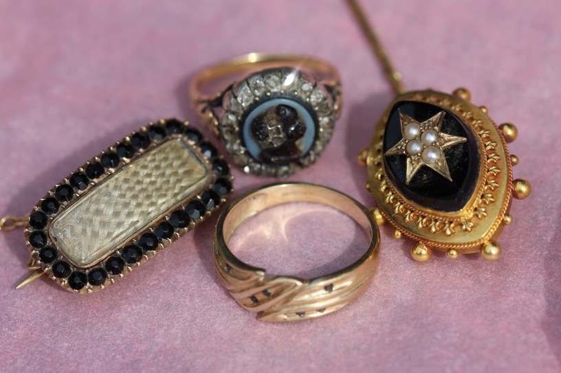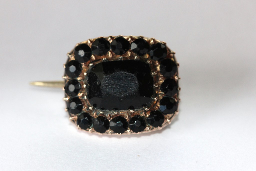 Surprisingly, there are quite a few black gemstones. You can find the following black gems – spinel, garnet, tourmaline, diopside, nephrite, onyx, obsidian, cubic zirconia, black coral and opal, as well as jet. The gemstones above are star diopside. There is also black glass, which in antique jewellery was usually French jet (used in the 18th and 19th centuries as a replacement for Whitby jet), Vauxhall glass and paste.