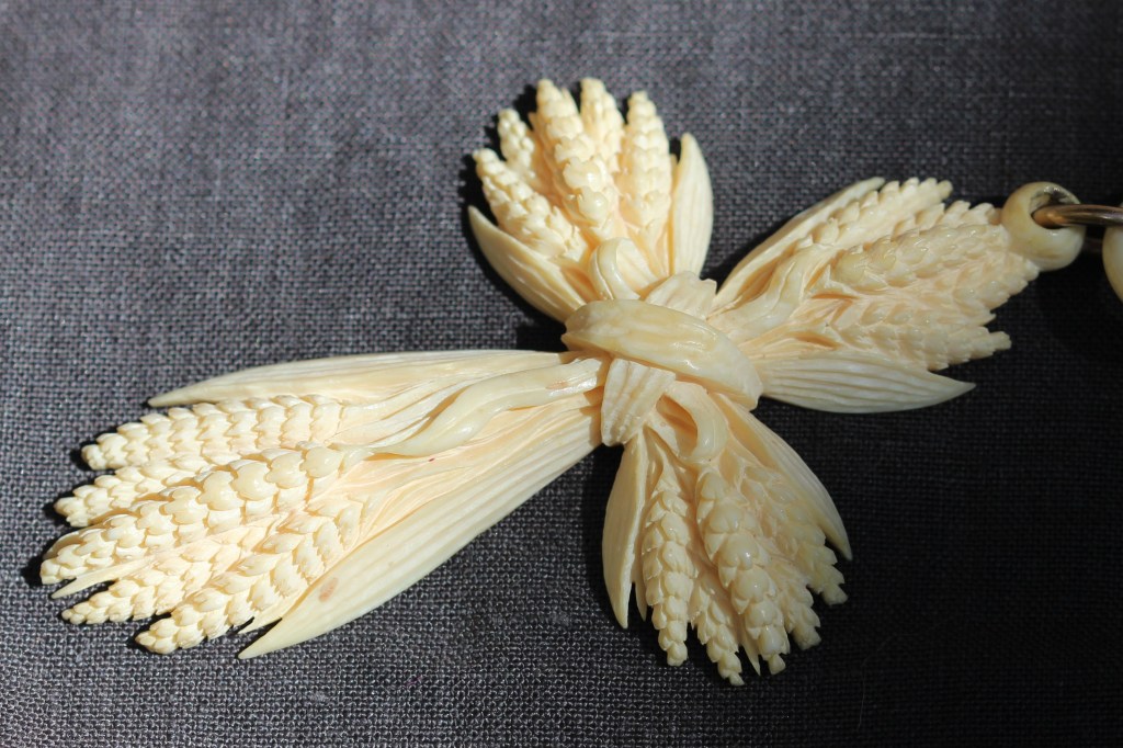 Ivory – In the 18th century, there were a few key ivory carving centres. Why they had become centres differed. I will discuss two in particular – Dieppe and Erbach. One became a centre because of location, the other through sponsorship. Historically, Paris had a strong ivory carving industry but Dieppe, which was the port into which African ivory was shipped, began to develop carving schools. The jewellery they produced was intricate and delicate and included crosses and brooches comprised of sheaves of wheat, lily of the valley and bouquets of flowers. In 1731, there were 12 ivory artisans and 250 assistants, but the industry had reduced significantly by the 1870s.