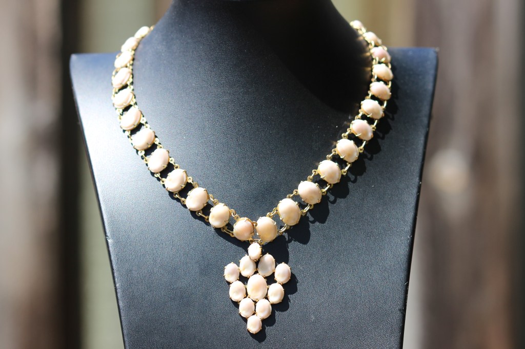 Antique white operculum necklace and pendant