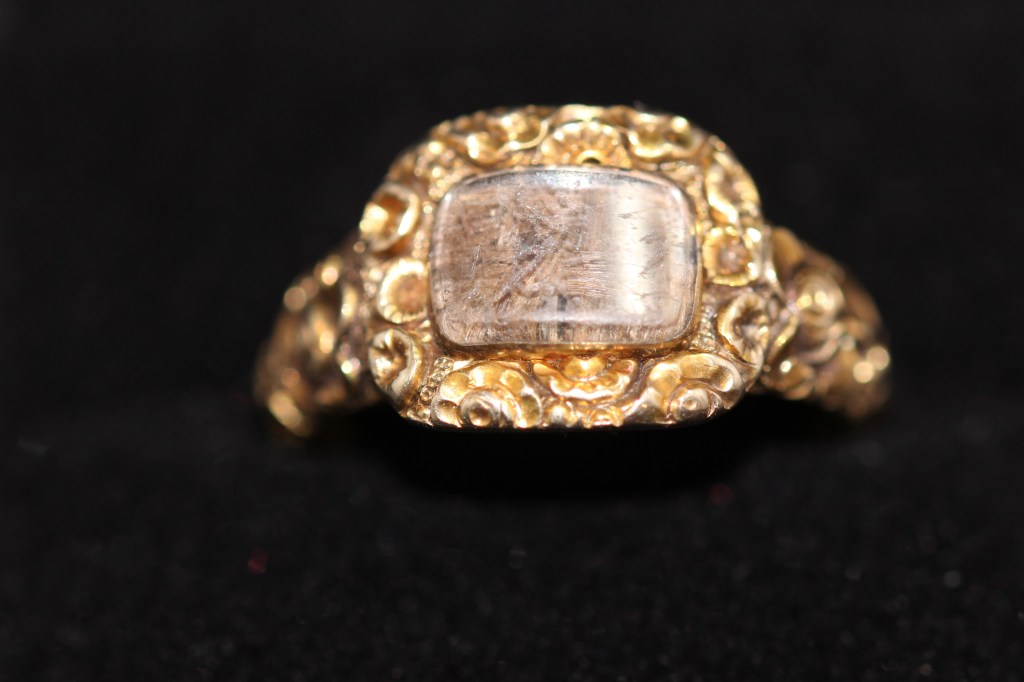 The wearing of memorial rings and mourning rings were a part of every day life. Memento mori (Remember you must die) rings acknowledged the inevitability of dying. Imagery such as skulls, coffins and crossbones were included in enamel on the outside of rings with an inscription such as ‘hope of an eternal life’ (but in Latin) inscribed inside. Gradually these memento mori rings became mourning rings but with inscriptions such as ‘For thee I morne as one forlorne’.