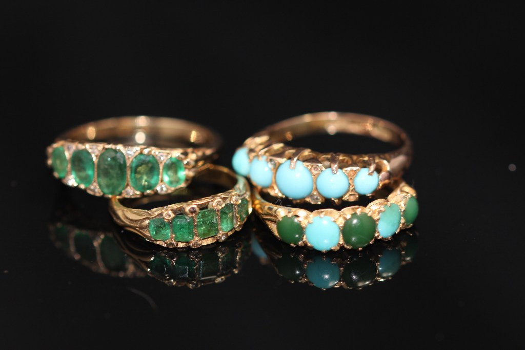 Wearing lots of hoop and half hoop rings was still common and the style would remain popular throughout the century but closed backs began to disappear. As well, gem settings began to move from cut down collets to gallery and bridges, which lifted the gems up from the finger.