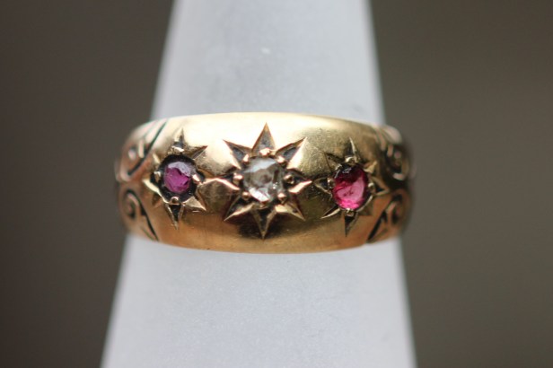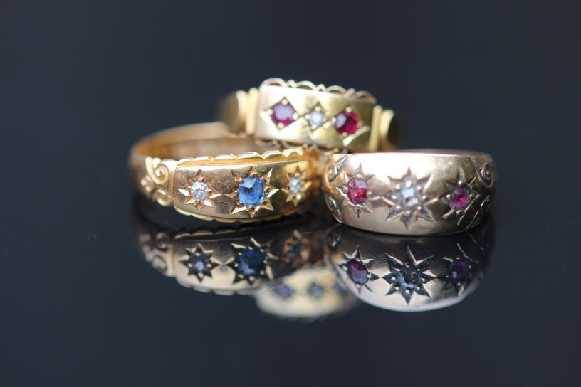 Gypsy-set rings, where the stone is sunk into the surface of the bezel, was introduced in the late 1860s but were to reach the height of popularity during the last quarter of the 19th century. Relatively inexpensive, they became a common ring style. Many had the stones set in a star setting. They were an ideal ring for day wear.