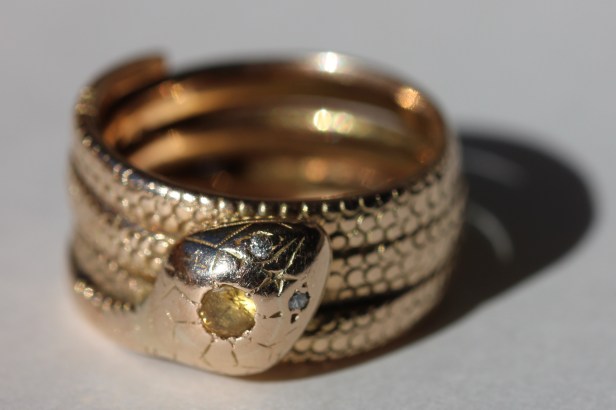 As I mentioned in the previous post, snake rings became wider, with many loops wrapped around the finger, quite a move away from the delicate style earlier in the century.
