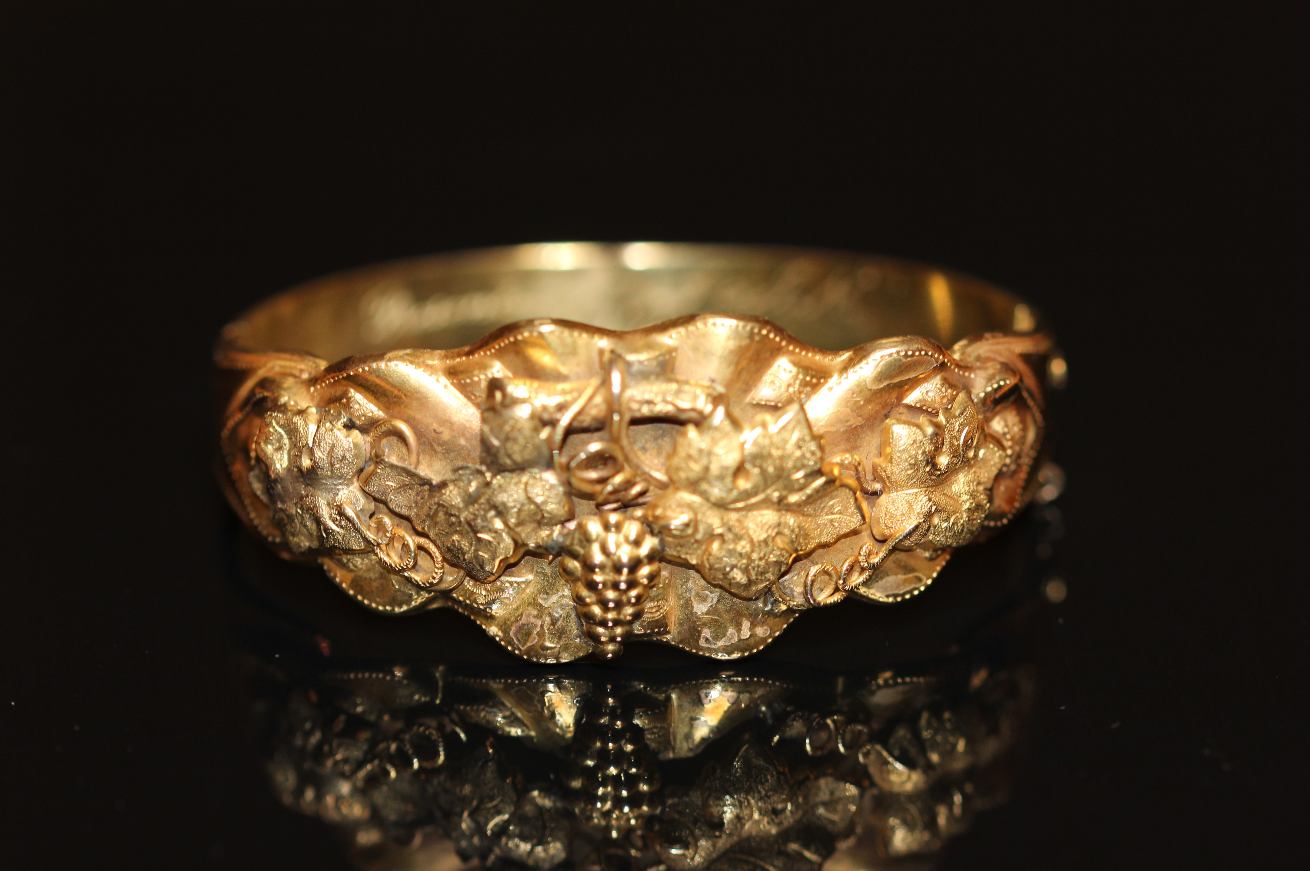 It is the theme of abundance that is clearly displayed in a lot of antique jewellery. If you look at the detail of this antique Australian bracelet below, you can see a lovely display of foliage with leaves, tendrils and, in the centre, a bunch of grapes.