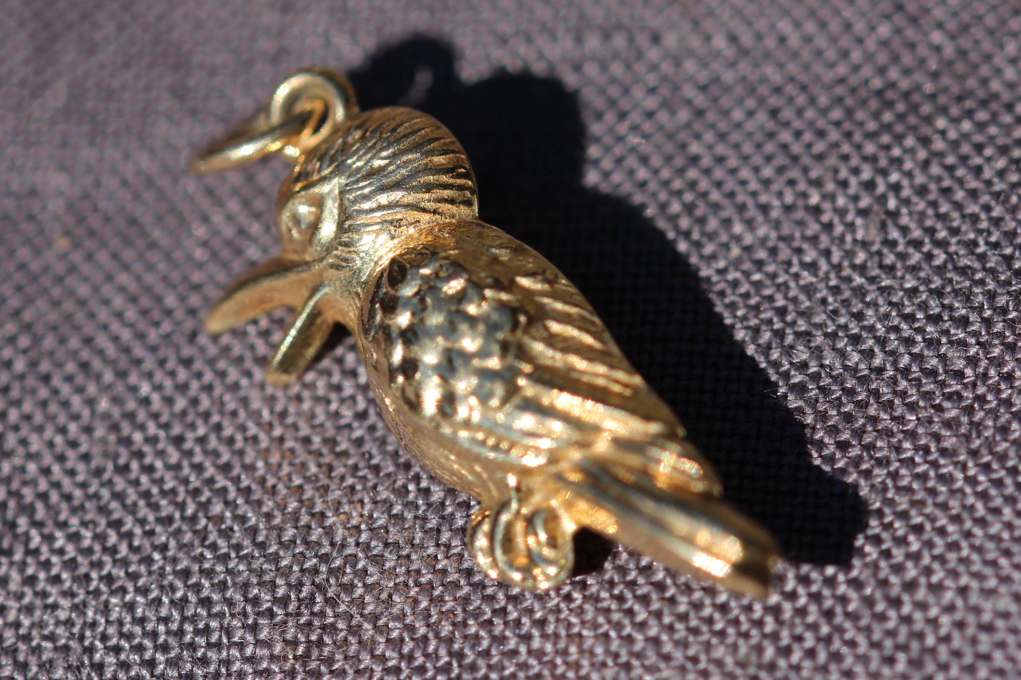 Another popular bird represented in charms is the kingfisher or, if the charm was made in Australia, the kookaburra. The bird charm below is probably meant to be a kingfisher as it has UK hallmarks. There is probably no symbolism around using the image of these birds as charms other than generally as a lucky charm. Of course, if you search online for the symbolism associated with kingfishers (and many other birds and animals), there will be numerous web pages giving different meanings but it is difficult to find any evidence supporting most of these suggestions.