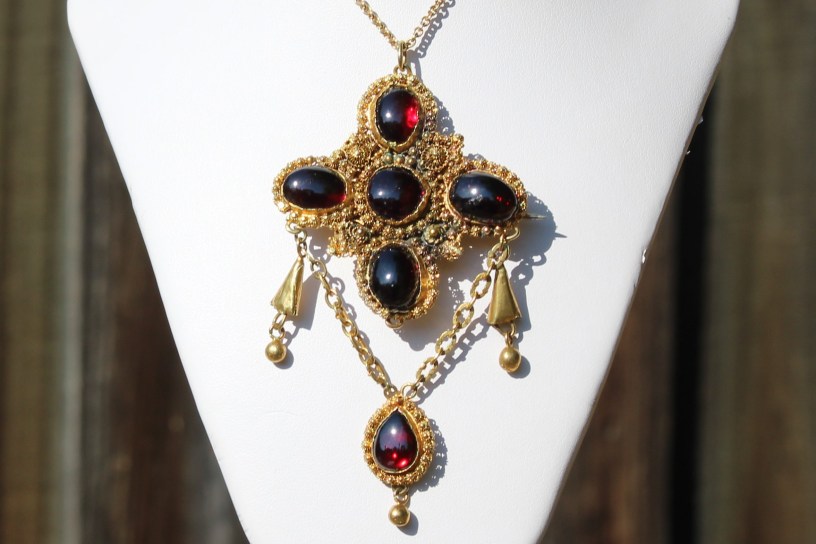 The Napoleonic Wars, between 1800 to 1815, were to involve a number of countries. France, obviously, but also Austria, Russia, Portugal, Spain, Britain, Prussia, Saxony, Holland and Sweden.  All countries involved suffered financially but one approach taken by Prussia to raise funds so it could keep on fighting was to ask wealthy women to donate their jewels. Princess Marianne of Hesse-Homburg donated jewellery and encouraged other women to do the same. By way of exchange, the donors received Berlin Iron jewellery, made of black cast iron and often inscribed with the slogan ‘Gold I gave for iron 1813’. Or ‘Exchanged for the welfare of the Fatherland’.