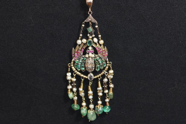 Scarabs appeared again in the 19th and early 20th centuries, following Napoleon’s campaign in Egypt in 1798 and the excavation of graves in Egypt. There was a jewellery revival, reproducing Egyptian jewellery, including scarab jewellery, in the 1860s following the opening of the Suez Canal in 1869. A further Egyptian revival occurred in the 1920s after the discovery of Tutankhamun’s tomb. The 1920s revival in particular saw a focus on the vibrant colours of the Egyptian discoveries, represented in jewellery in emeralds, rubies, sapphires and diamonds.