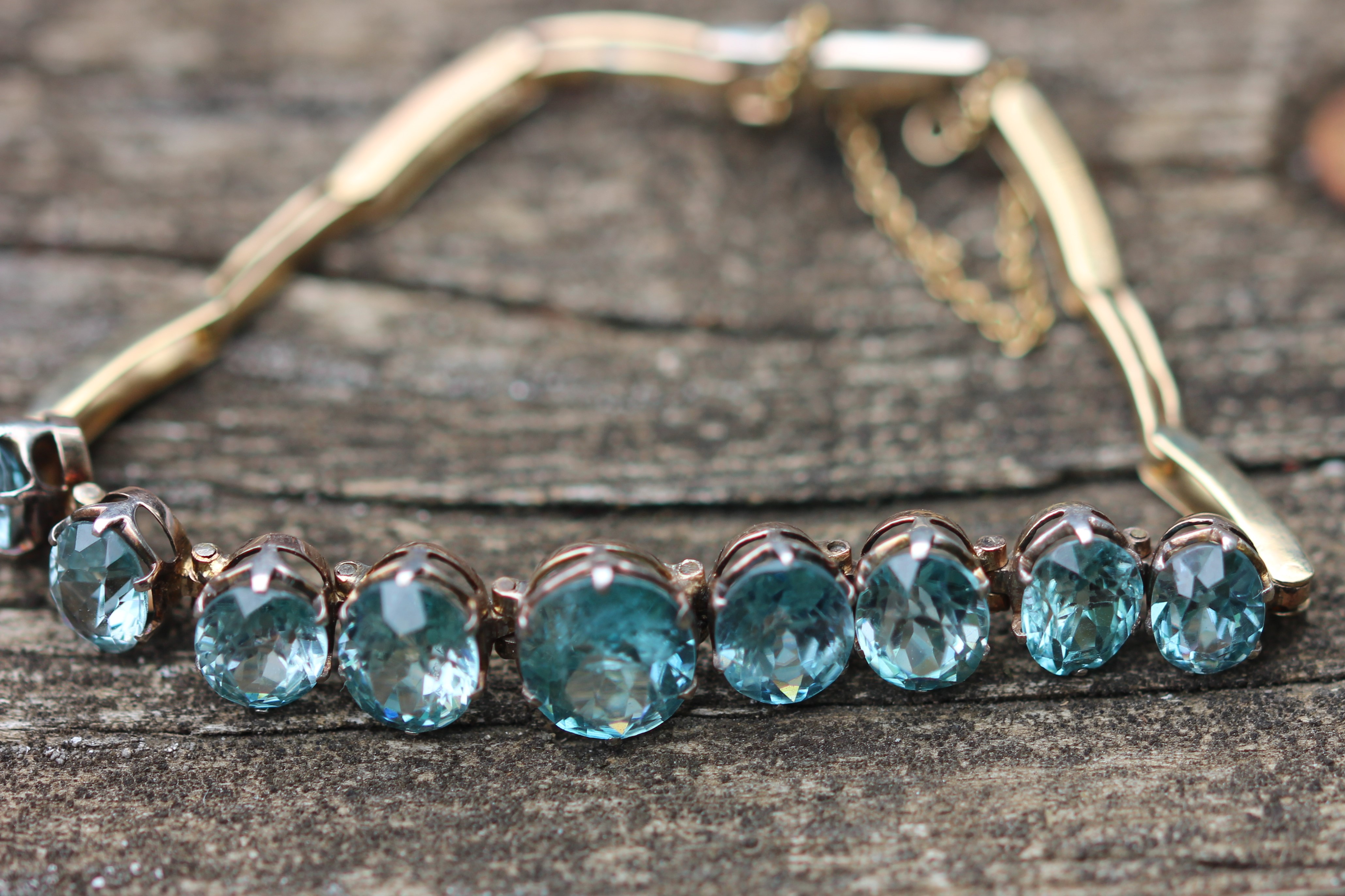 They range in colour from shades of brown, yellow, blue, green and colourless (white). The colourless version was used often as a diamond substitute because it was so refractive and bright. The most common colour seen today is an intense blue. To achieve this depth of colour, the gems are heat treated.