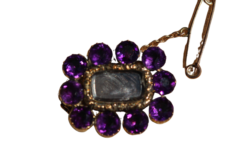 The amethysts, which are foiled, are a beautiful deep purple and make the mourning pin very striking. It is easy to see why someone would treasure such a brooch and wear it for formal occasions.