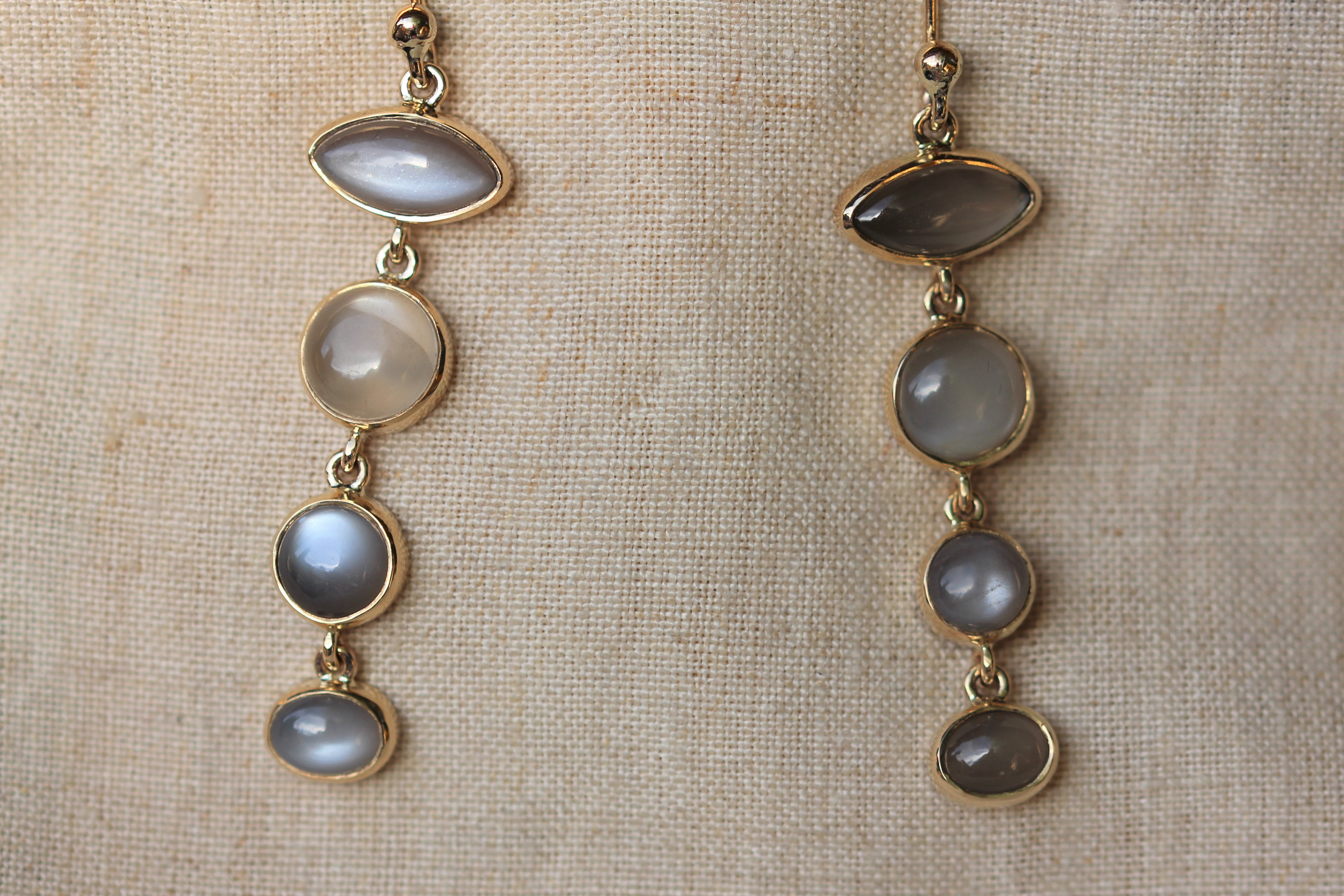 But moonstones come in a range of colours. As you can see from the moonstone cabochons in the photo at the top of the post, they can be a smokey grey, dark grey, brown, pinky orange and even a green. Some are more transparent than others but all of them seem to have an internal milky glow.