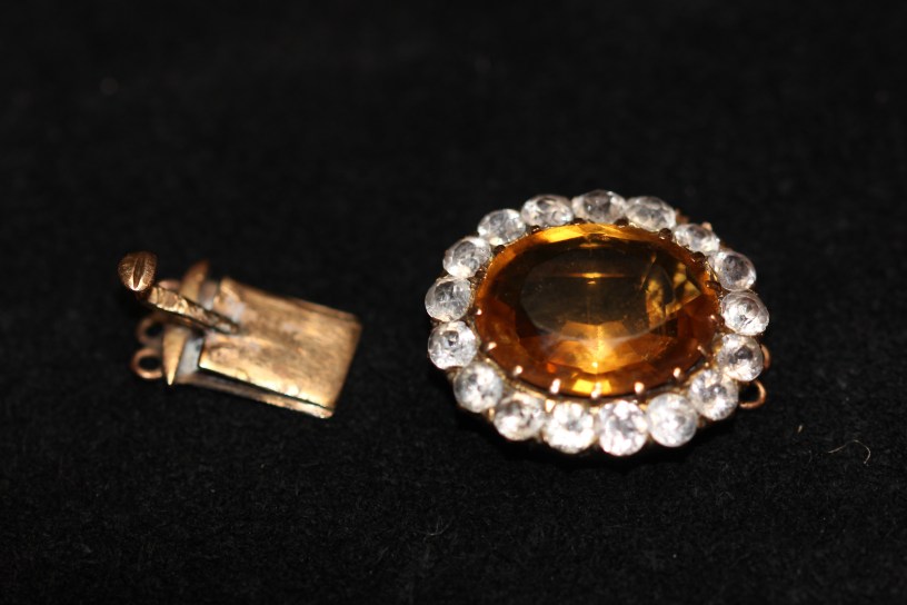 Generally, when we try to date a piece of unhallmarked jewellery, we look at the whole piece and not just one element but I was wondering if it was possible to just use the clasp as the sole means of dating. Let’s start with one popular clasp, the box clasp or tongue in groove clasp. A version of this style of clasp was used by Ancient Egyptians and Anna Tabakhova includes in her book ‘Clasps: 4,000 years of fasteners in jewellery’ at p61 a picture of a Northern Europe necklace from around 1600 which shows a tongue-in-box clasp with a rectangular slot.