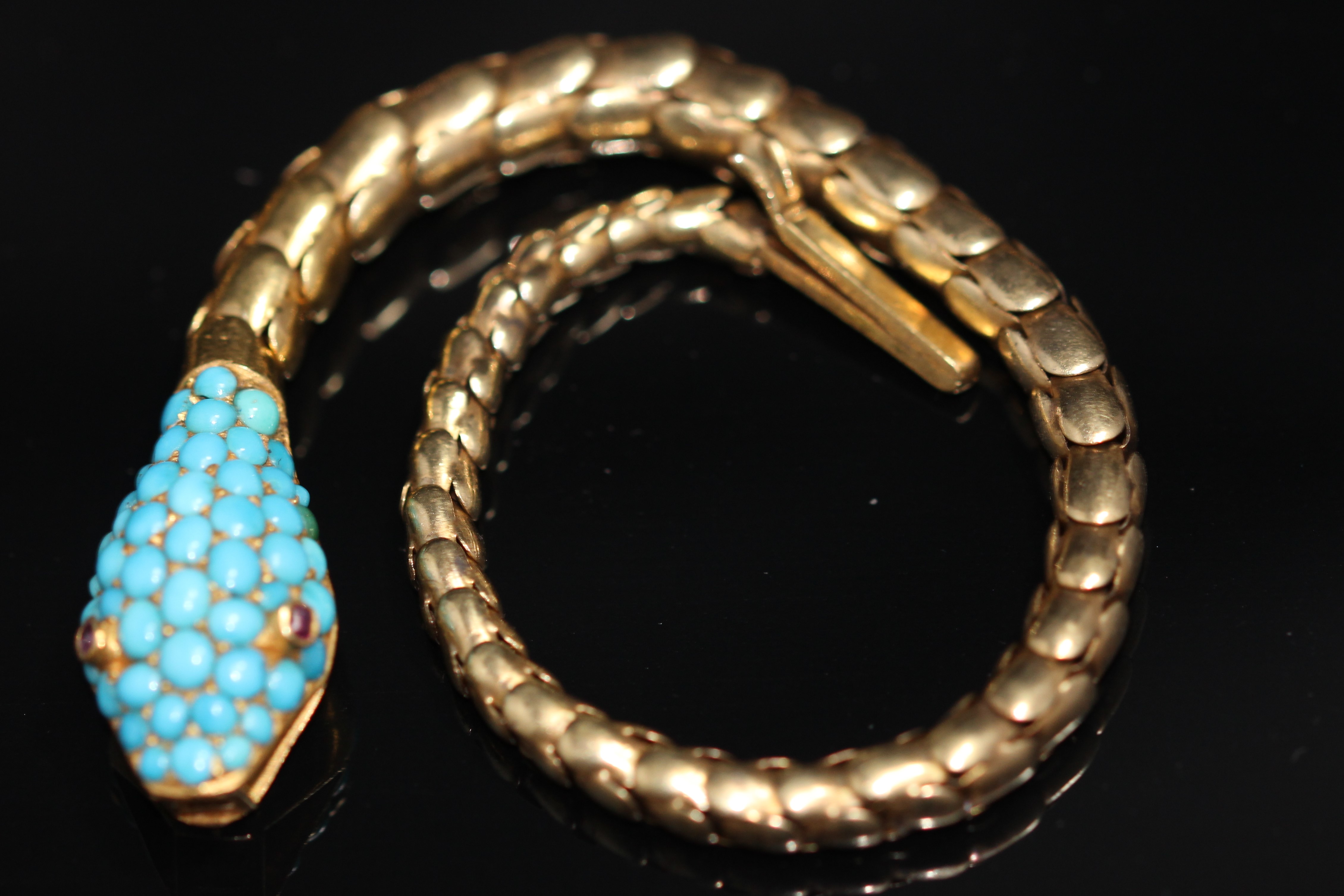 The last piece is a Victorian snake bracelet with pavé set turquoise head, a handsome piece.