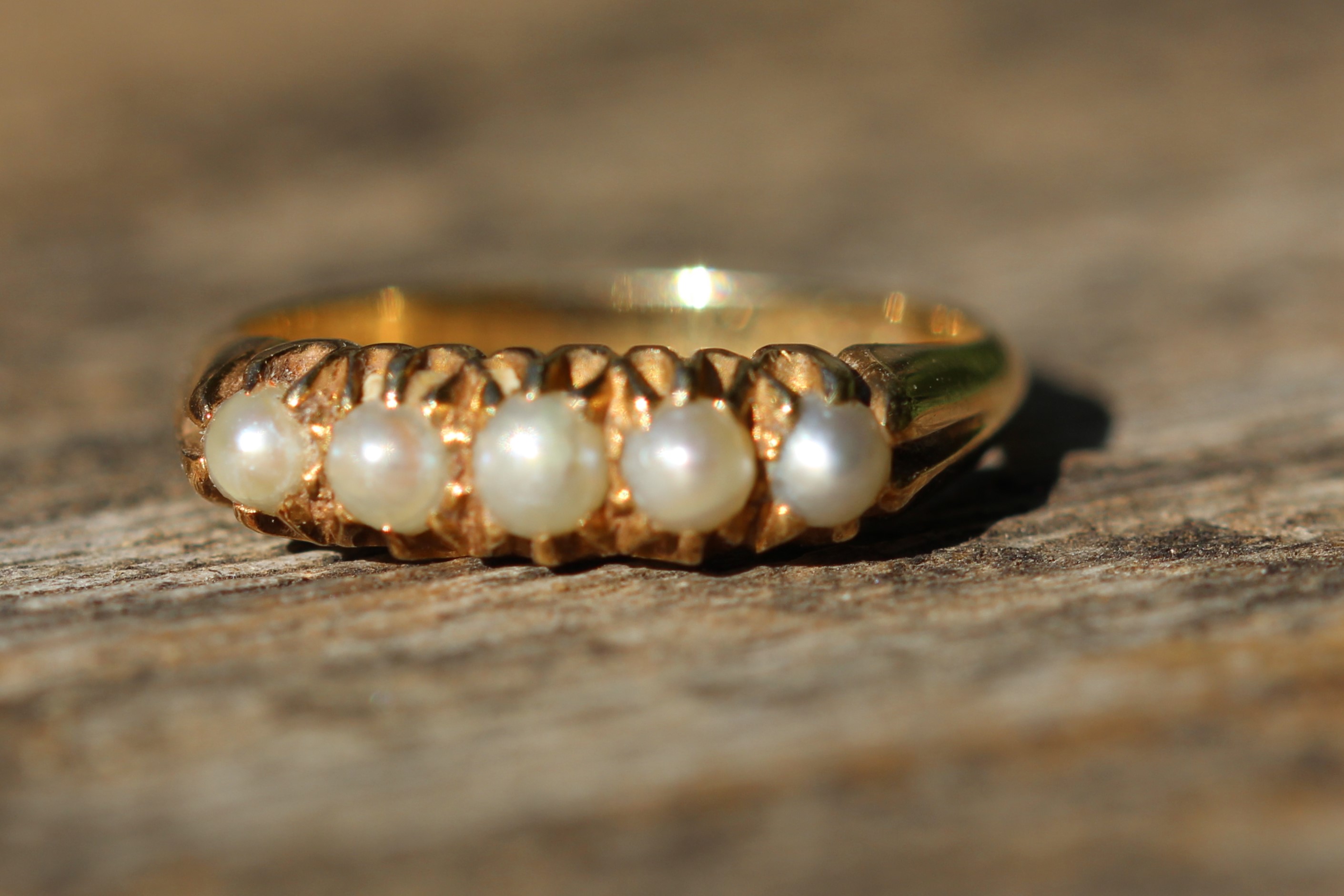One of the most popular gemstones for half hoop rings in the 19th century was the pearl. They were usually graduated but some were all the same size. They were the perfect gift for a young lady or future bride.