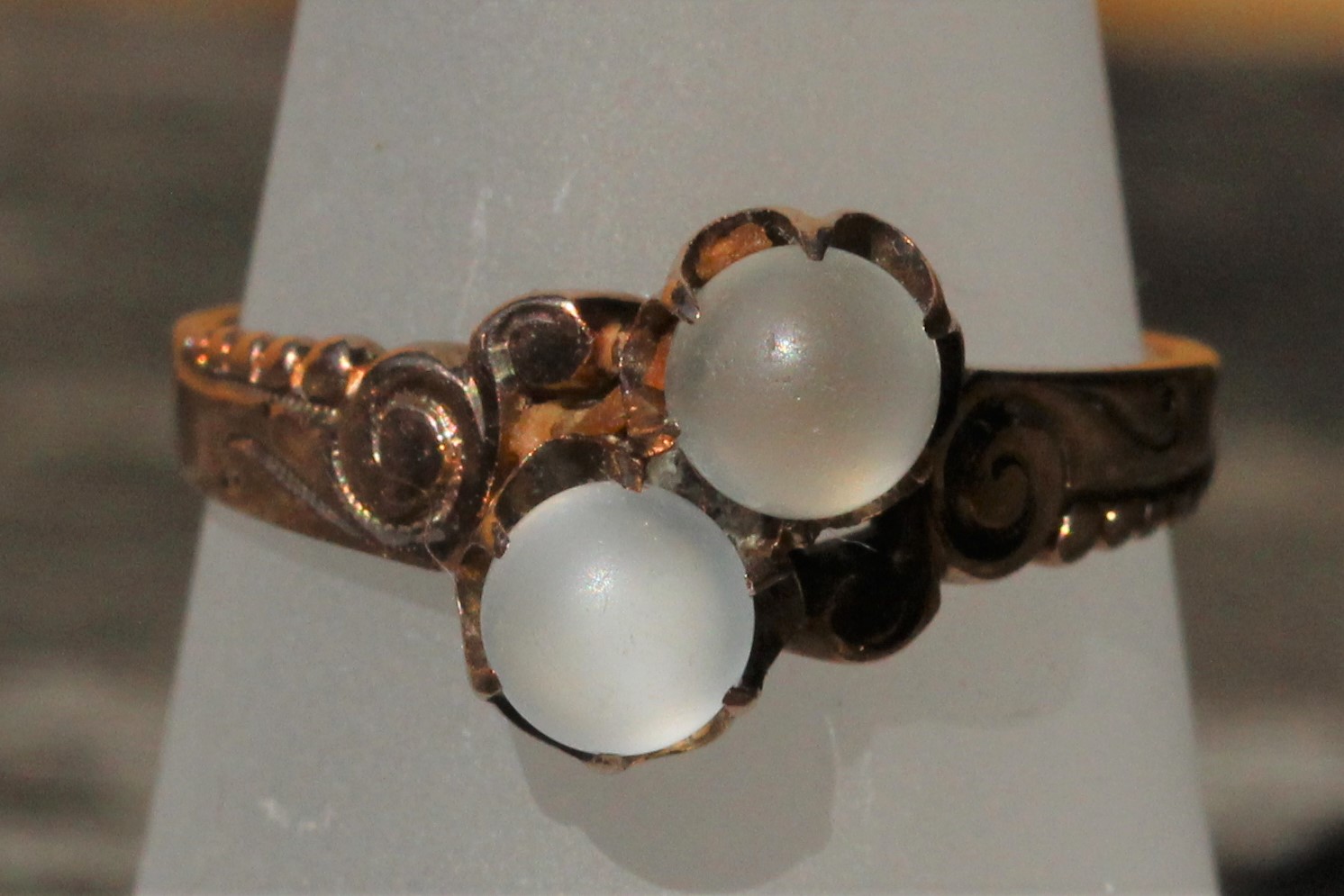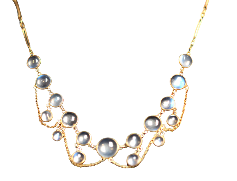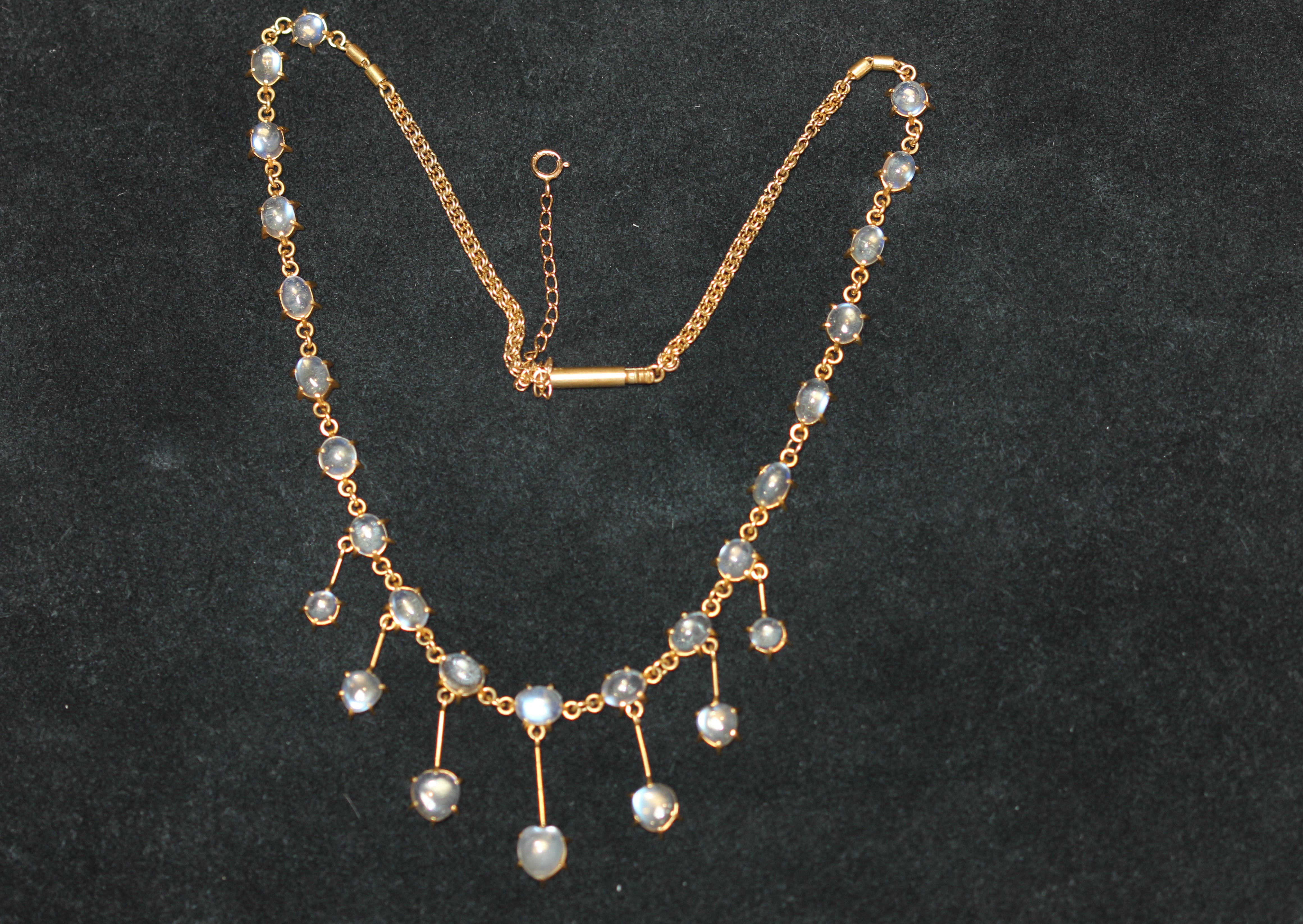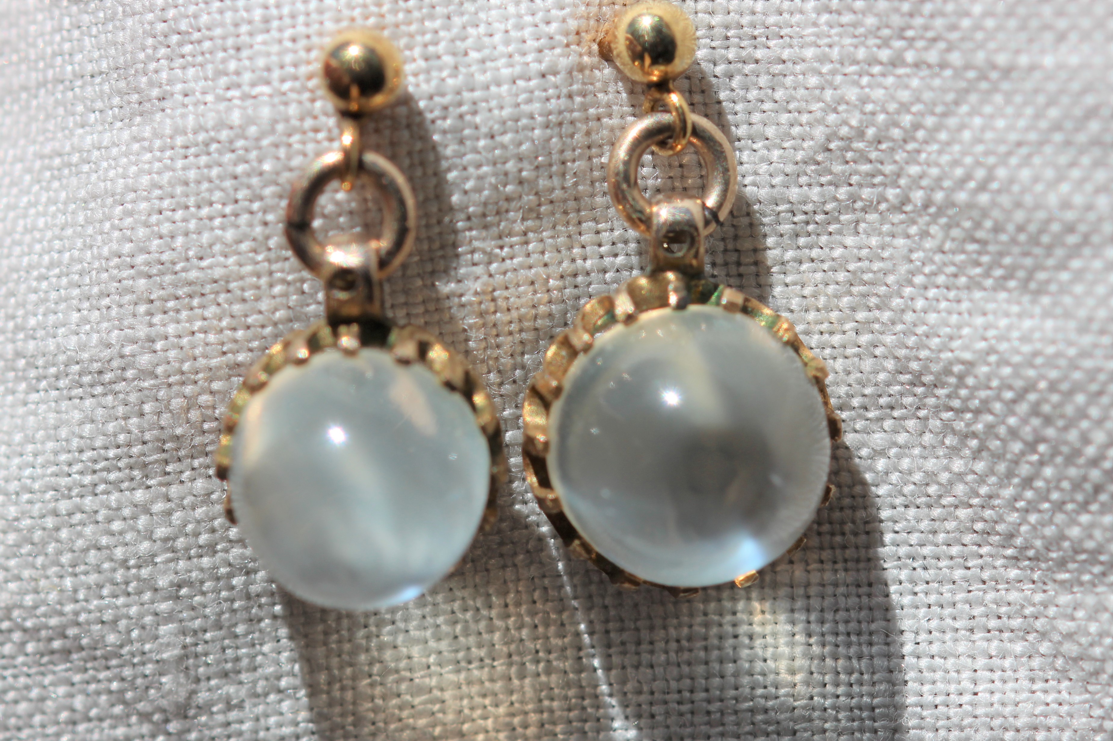 All the moonstones in the pieces photographed here are cut as round cabochons and they clearly show the effect of moonlight reflecting from within the depths of the stone. Beautiful!