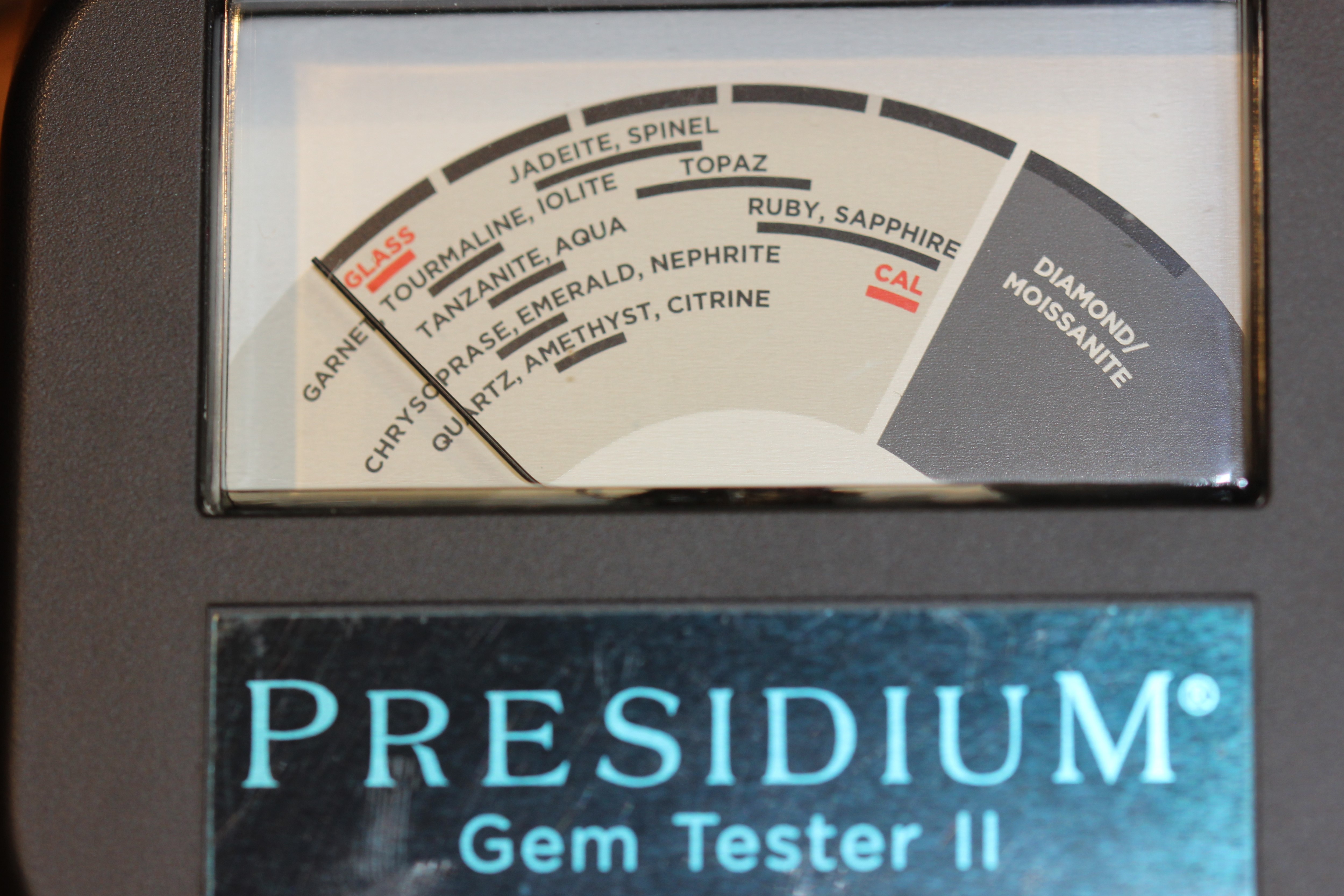 Some gemmology laboratories use expensive equipment like advanced spectroscopes, spectrometers, X-rays and XRF and so on, but there are some less expensive pieces of equipment now available that can help gemmologists and others working with jewellery to identify stones. For instance, there are a number of hand held instruments that can identify diamonds and others that can differentiate between diamonds and moissanite, the lab grown diamond imitation that came onto the market in 1998. Another instrument is called a gemstone tester, a thermal conductivity tester, which can help identify certain classes of gemstones. I have attached the photo above of a gemstone tester by Presidium and you can see the gemstone classes it can identify. By itself, the tester is not an adequate test of identity but it is very useful for indicating what a gemstone isn’t so that other testing can be conducted.