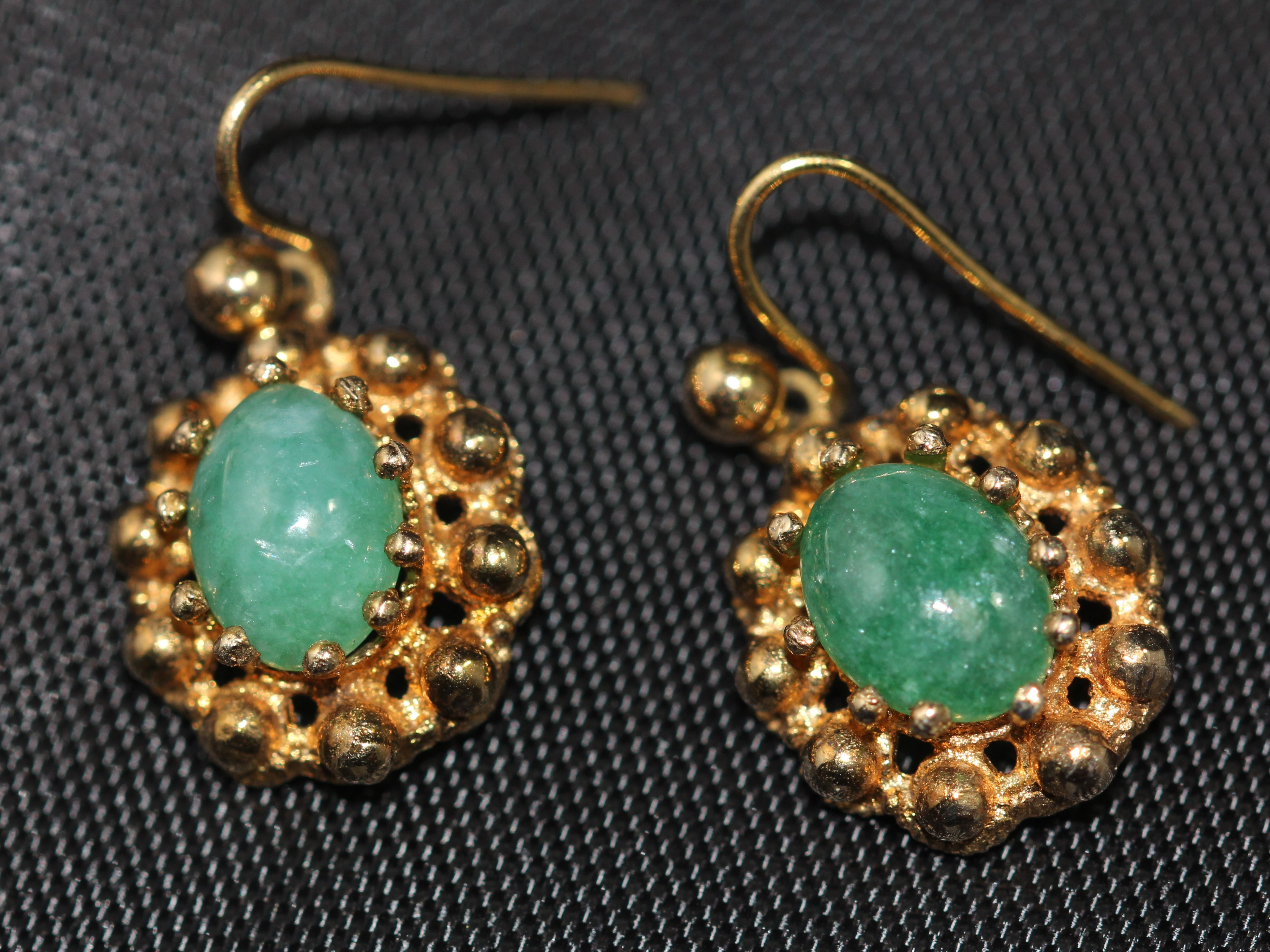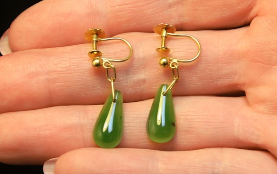 There are a lot of gemstones that have been called jade as they can look similar but they have different mineral structures. They include serpentine, amazonite, chrysoprase and aventurine. The earrings above are lovely amazonite stones, green with slight white mottling. Some of these look alike stones as well as glass have been used to imitate jade so care needs to be taken in buying any jade.
