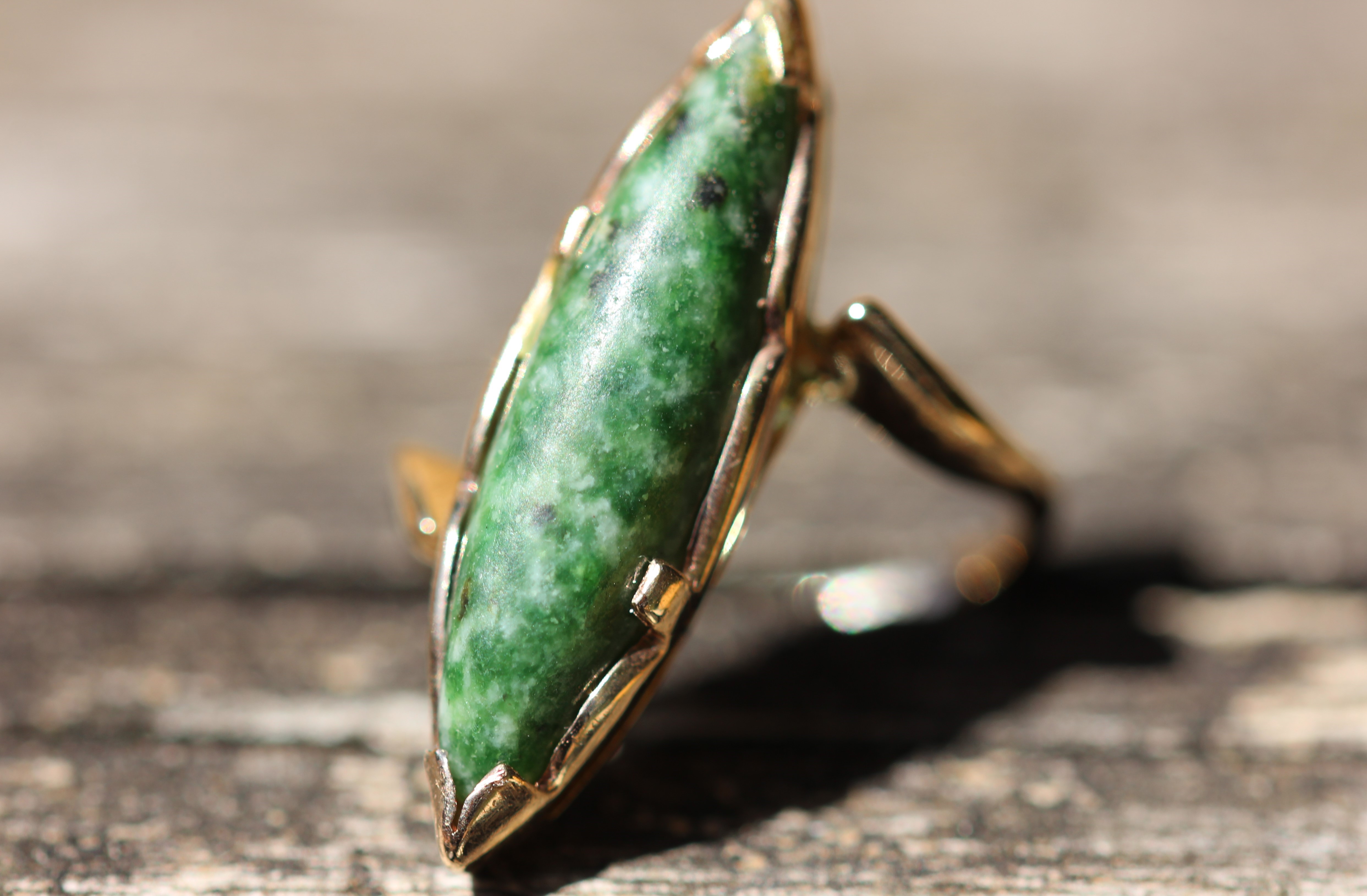 Jade is complicated. Prized for centuries, it is extremely tough, and has been used for tools like axes and weapons as well as for items for personal adornment. Jade is actually two separate minerals – jadeite and nephrite – but both are able to be called jade. While jadeite has a granular texture and nephrite has a fibrous texture, it is very difficult to tell them apart, particularly as both, but particularly jadeite, are subject to lots of treatments including bleaching, dyeing, filling, heating and waxing.