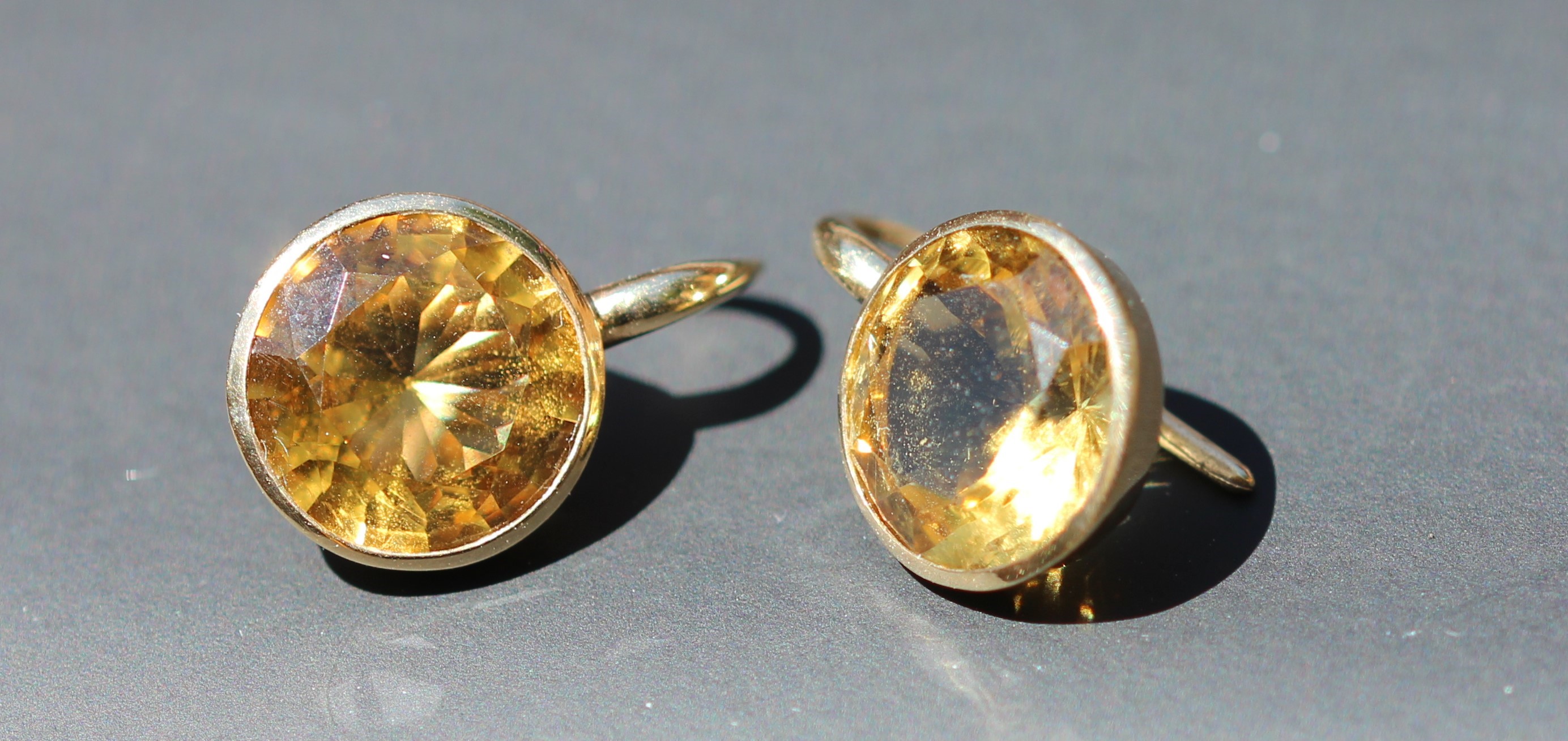 Natural citrines are more likely to be a lemon yellow. However, foiling of the stones was common up to the beginning of the 19th century and could result in them appearing darker, more a gold or orange than a lemon colour.