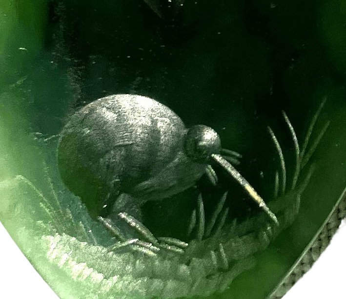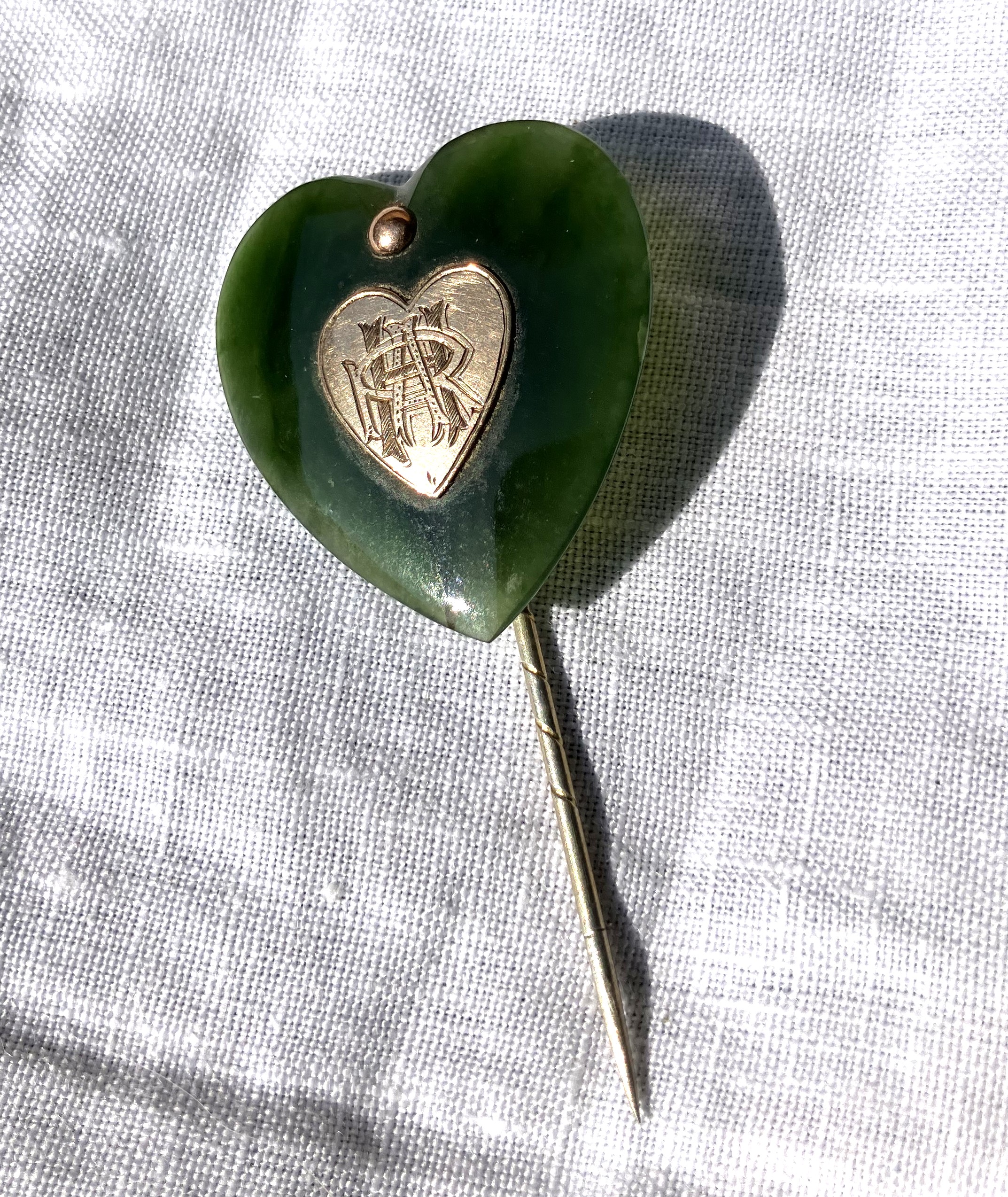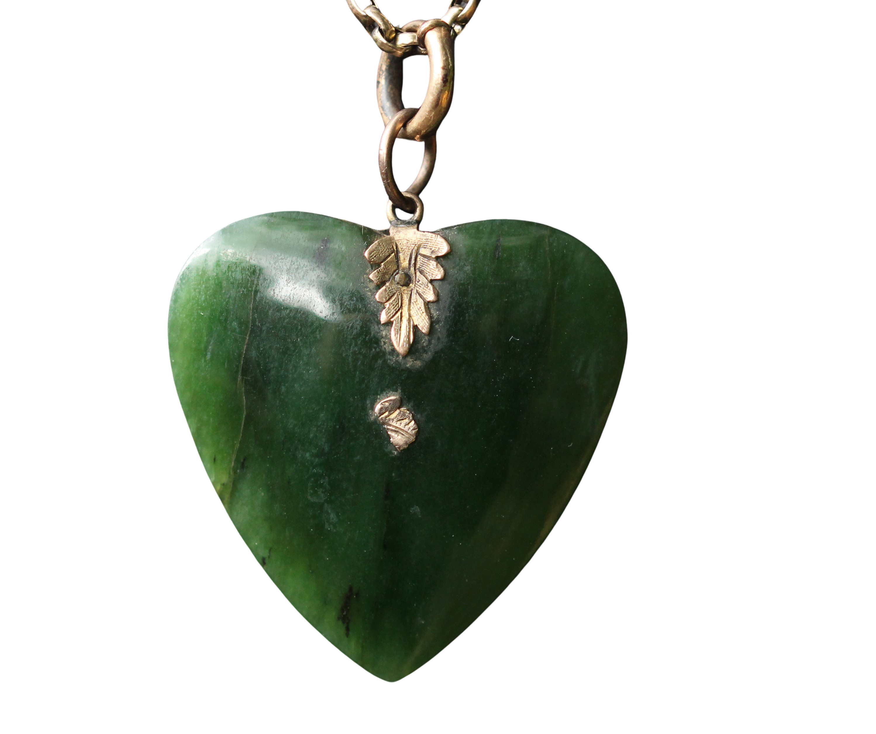 Typical pieces of colonial greenstone jewellery are hearts of all sized with gold bales and some with gold ferns affixed, brooches of all types, some bar brooches with engraved gold ends, others with gold borders, and various types of pendants and fob chains. Some pieces were engraved with kiwis (like the carving in the photo at the top of the post).