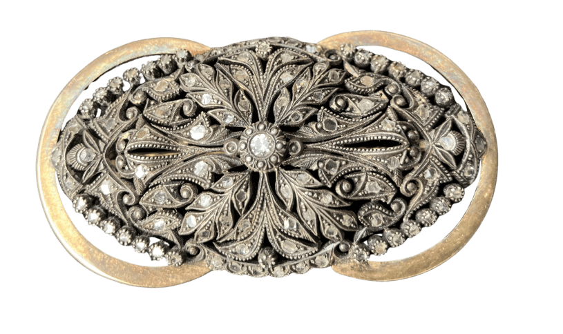 In this last post on wedding anniversary gemstones, I am looking at each decade, from year ten upwards. The gemstone for the year ten anniversary is the diamond and the photo at the top of the post is of a striking diamond brooch set in silver with a gold flat border. The central diamond is surrounded by a swirl of leaves and a row of diamonds.