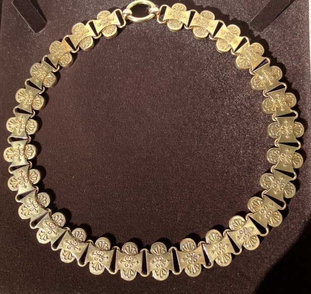 Celebrating fifty years of marriage requires something very special. Gold is set down for this anniversary and I think this fabulous gold Etruscan style collar would be appreciated.