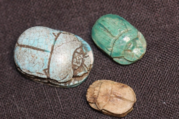 Counterfeiting, fakes and misrepresentation are not new problems and have been around for centuries. There are instances in ancient history where fake or imitation gems have been found in items of jewellery contained in burial sites but it is not clear why they were imitations. One example often used is that of faience, a ceramic blue material with a glaze of a material which was used by the Egyptians to duplicate prized turquoise. The central scarab in the photo above is an example of faience, though quite worn.