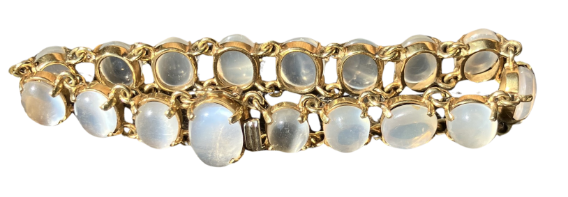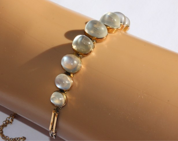 Historically, moonstones are linked to worship of the moon and some Victorian jewellery contains moonstones carved with the face of the man in the moon. They were particularly popular gemstones in the Art Nouveau and Arts and Craft periods. The stones are usually cut as cabochons, with a domed top.