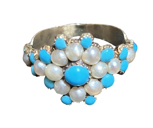 An interesting thing about pearls is the variation in size that is used in jewellery, from tiny seed pearls through to half pearls, large South sea pearls and baroque pearls. Half pearls, which range in size from .5 mm to .75mm, up to 4mm in some cases, were used a lot in the19th century in lockets, watches, rings and as borders for brooches. They are small pearls that either had been cut away from the shell of the mussel and so had a flat side or were the better halves of defective pearls. The centre of the half pearl industry was Idar and in Oberstein in the Duchy of Oldenburg, Germany. Pearls were purchased from India.