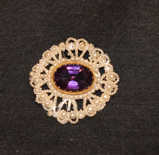 Another June birthstone is the pearl, another gorgeous gem, organic rather than mineral though. It, too, is a quietly mysterious gem. While not as durable as many other gems, pearl jewellery dating around 500 BC has been found in Iran as well as pieces from Ancient Egypt around 323-330 BC. Because of their scarcity, pearls were generally associated with wealth and power, particularly during the Elizabethan period and the Renaissance. Seed pearls, from freshwater mussels or seawater oysters, were more obtainable than large pearls and became very popular in the 18th and 19th centuries, particularly for bridal and mourning jewellery. The little delicate brooch below is made of seed pearls and larger pearls sewn by hand onto a backing of mother of pearl and is typical of the jewellery.