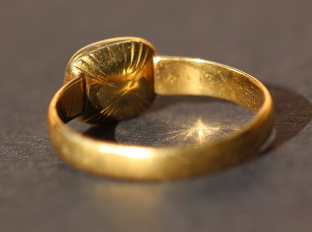 The way a ring has been constructed can also be an important aid in identification of age. The Georgian foiled closed back citrine ring is a good example. The closed back setting of the stone, with a foil back and a cut-down collet is typical of rings from the Georgian period.