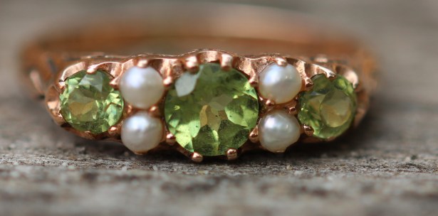 It was popular during the late Georgian and Edwardian periods. In the latter period, it became associated with the suffragette movement. Women suffragettes wore colours of green, white and violet, standing for ‘give women votes’. Jewellery contained peridot (green for give), pearls (white for women) and amethyst (violet for votes).