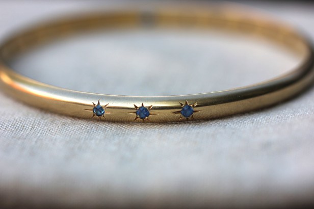 The back of the bangle is set with three sapphires. It is a striking piece of jewellery.