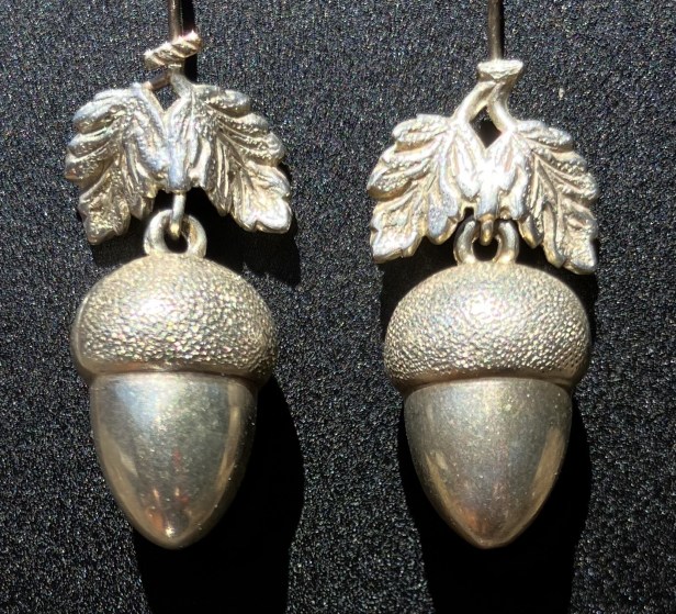 Interest in nature was very strong during the 19th century, and the pair of Victorian silver acorn drop earrings, below, provide a good illustration of this interest. The earrings are hollow and date about 1885.
