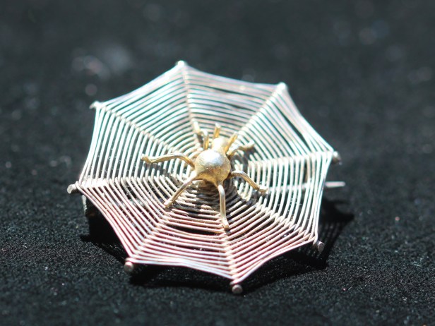 Insects were a common theme. The little silver brooch below has a handmade cobweb with a little gold spider in the centre.