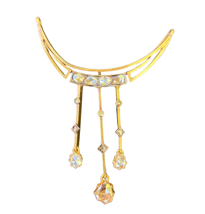 This is my last post for 2025 so I thought I would just show off a few interesting pieces obtained in 2025. The photo at the top of the post shows a late Victorian gold pendant shaped like a crescent, set with rose cut diamonds, with three drops also set with diamonds. Its a very pretty piece.