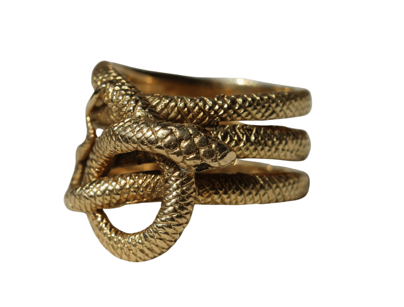 I have chosen some lovely snake pieces for this week’s blog, all showcasing snake coils. The first piece is the vintage gold snake ring at the top of the post. While most snake rings usually wrap once, twice or three times around the finger, this one does this but also coils itself around the top of the ring. It is beautifully cross hatched to represent textured scales.