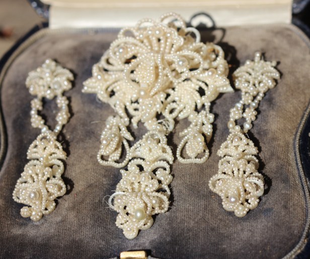 You can see from the photo above and below that some repairs are needed to the pieces as some of the thread has broken and a few pearls are missing. Fortunately, there are expert restorers who can repair and replace what is lost.