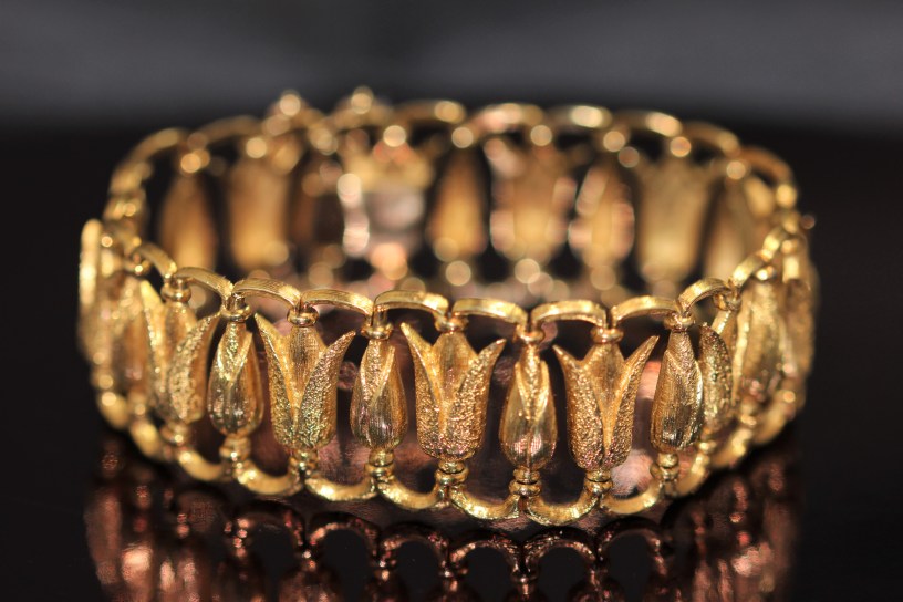 Bracelets and bangles are basically fairly simple things, a band or a series of links, usually joined by a clasp of some sort, worn around the wrist. And yet, there are so many different types and shapes, with different methods of construction. It is hard to group them. Sometimes, we group them depending on when they were constructed, Georgian, Victorian, Edwardian and so. But there are other ways to group them and in this post, I decided to focus on those comprising only metal, specifically gold.