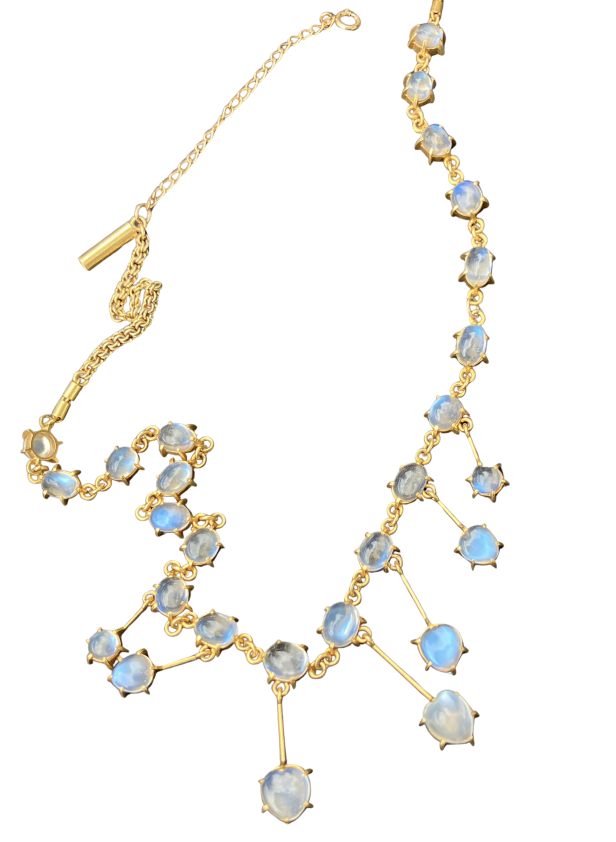 The first item is a necklace extender. A lot of antique necklaces can be quite short, only around 30cms, and may not be easy to extend. One solution is to use a chain extender, like the one pictured below. It is just a small length of chain with a ring at one end and either a ring or a spring ring clasp at the other end. You simply clasp the spring clasp or the jump ring on one end of the necklace and use the original clasp to join the extender to the necklace.