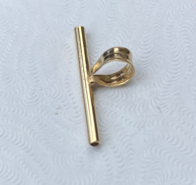 The last gadget is something I only discovered a few months ago. It is a brooch converter, pictured at the top of the post. There are beautiful antique brooches around but they can be difficult to wear. They look good, for instance, on a blazer or jacket, but not so good on jumpers or thin tops. These little items allow you to temporarily convert a brooch to a pendant. The converter is a simple tube with a loop attached to the middle of the tube. You simply slip the tube over the brooch pin, centre the tube along the pin and then feed a chain through the loop. They come in different tube diameters and lengths. I have only found them in gold-filled versions or in plated brass, but not solid gold. They are great little items.