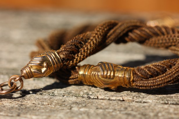 Hands as jewellery became very fashionable again in the late Georgian era, used as necklace clasps in the form of hands. There was generally just a single hand, usually gloved and with cuffs, some made of lace, set with gemstones, or with a cuff bangle. The hand might be wearing a ring.